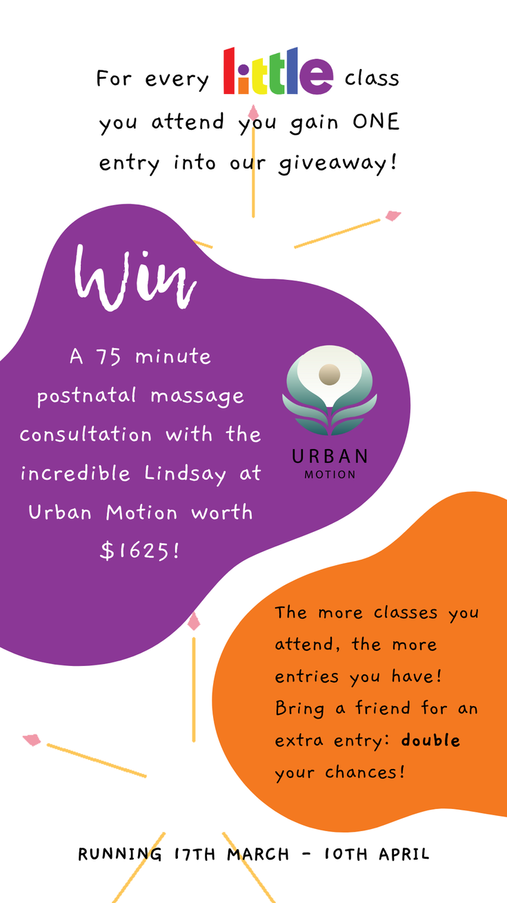 Join Little anytime between March 17th - April 10th to be in with a chance of winning a 75 minute postnatal massage consultation with the incredible Lindsay at Urban Motion worth $1625!